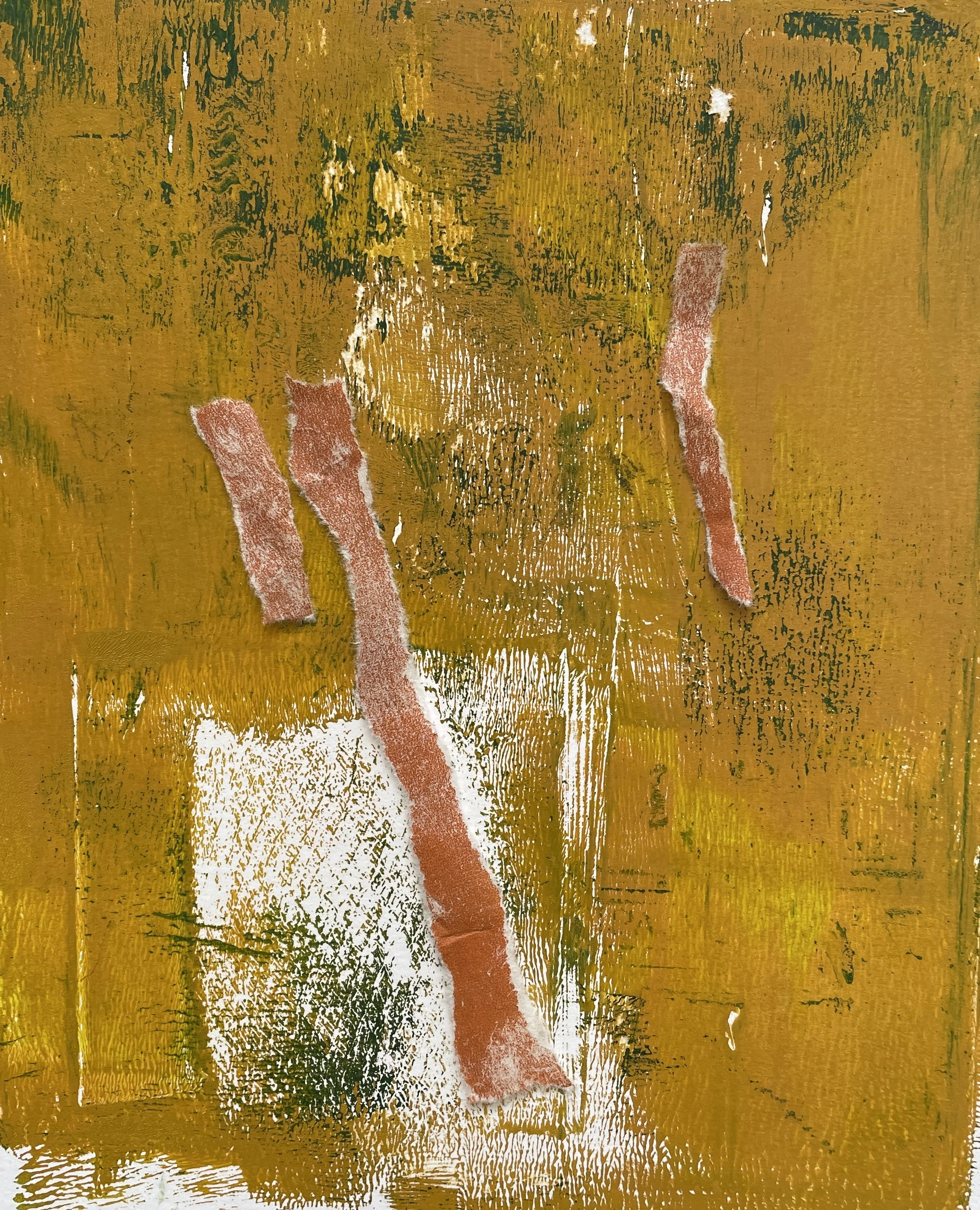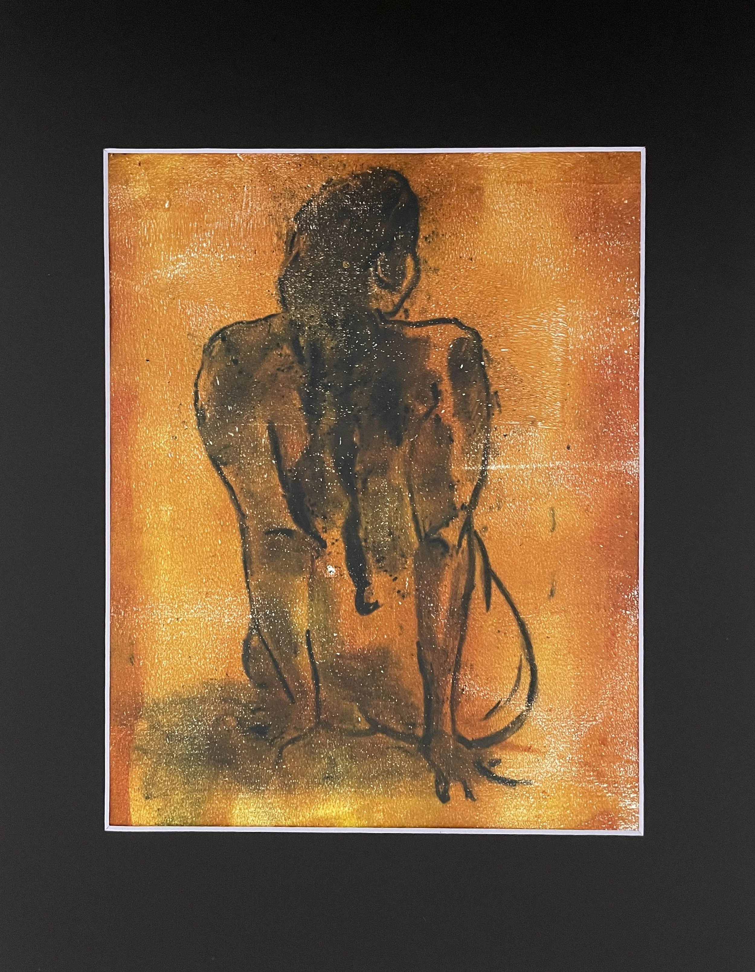 "Imprints of Absence", 2025, mixed media, image 10x8", 14x11" acid free paper mat, plastic sleeve provided