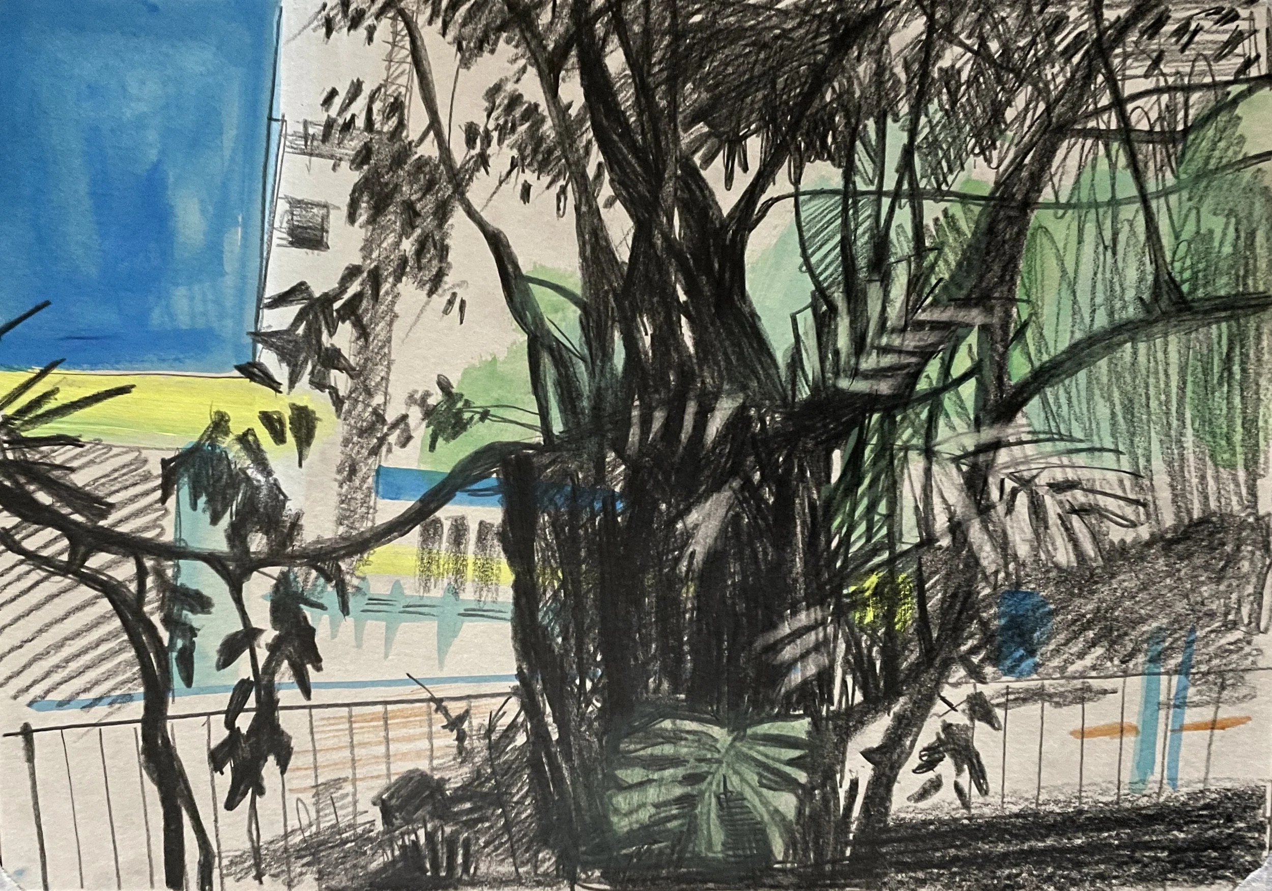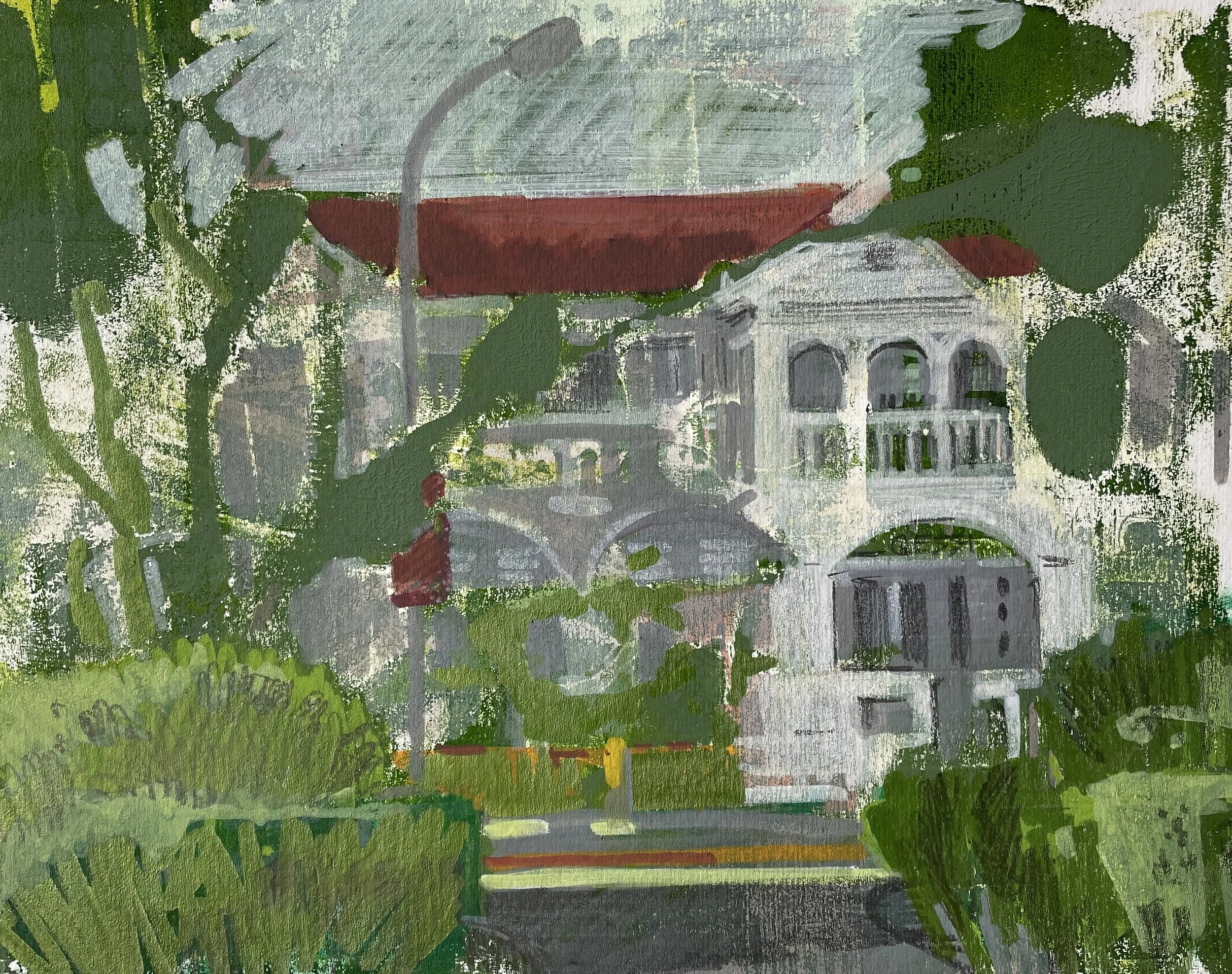 "Corner of the Botanic Gardens", 2024, study for a large painting, 30x40cm, oil on paper