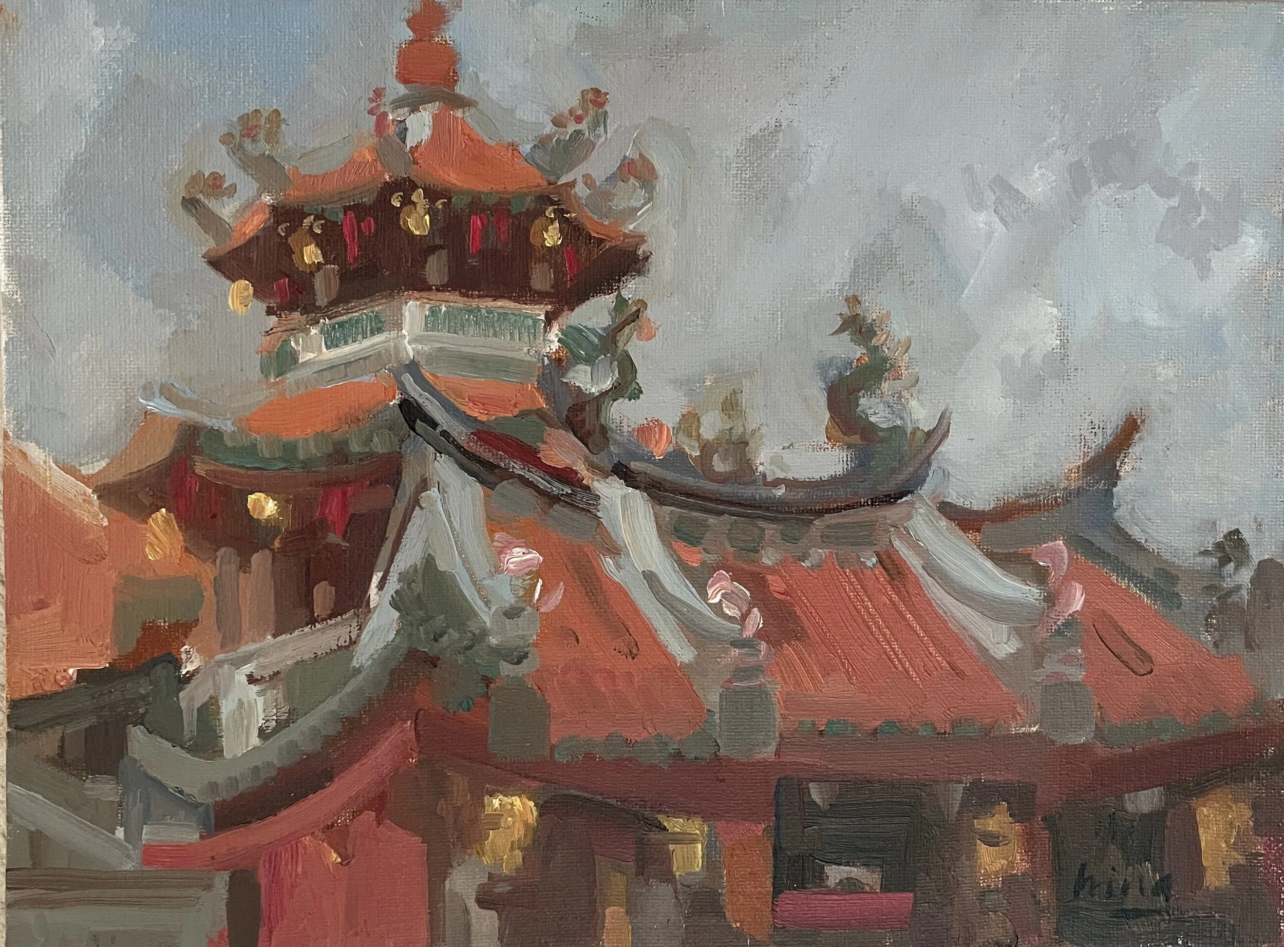 Thian Hock Keng Temple, 2024, oils on canvas panel, 9x12", unframed