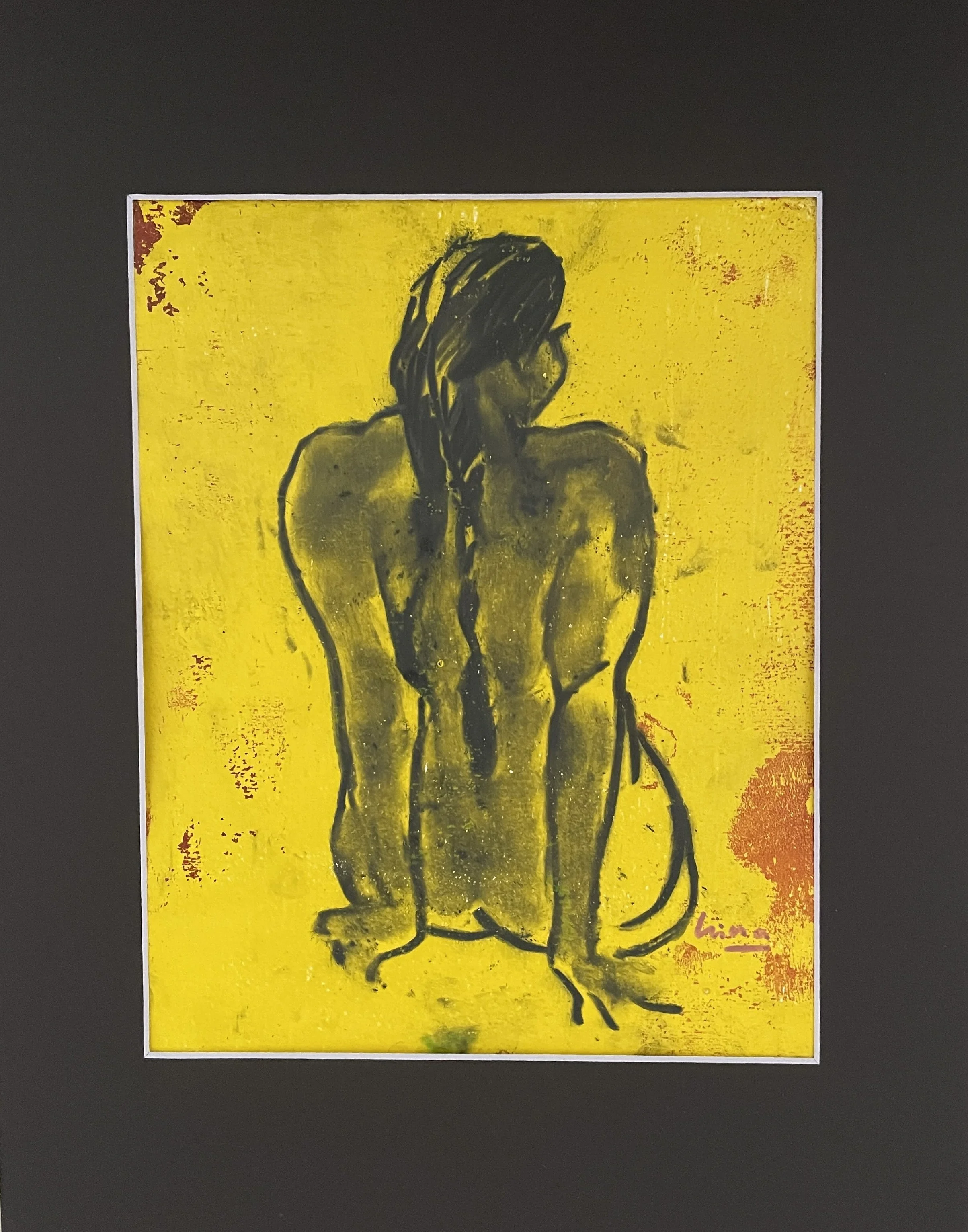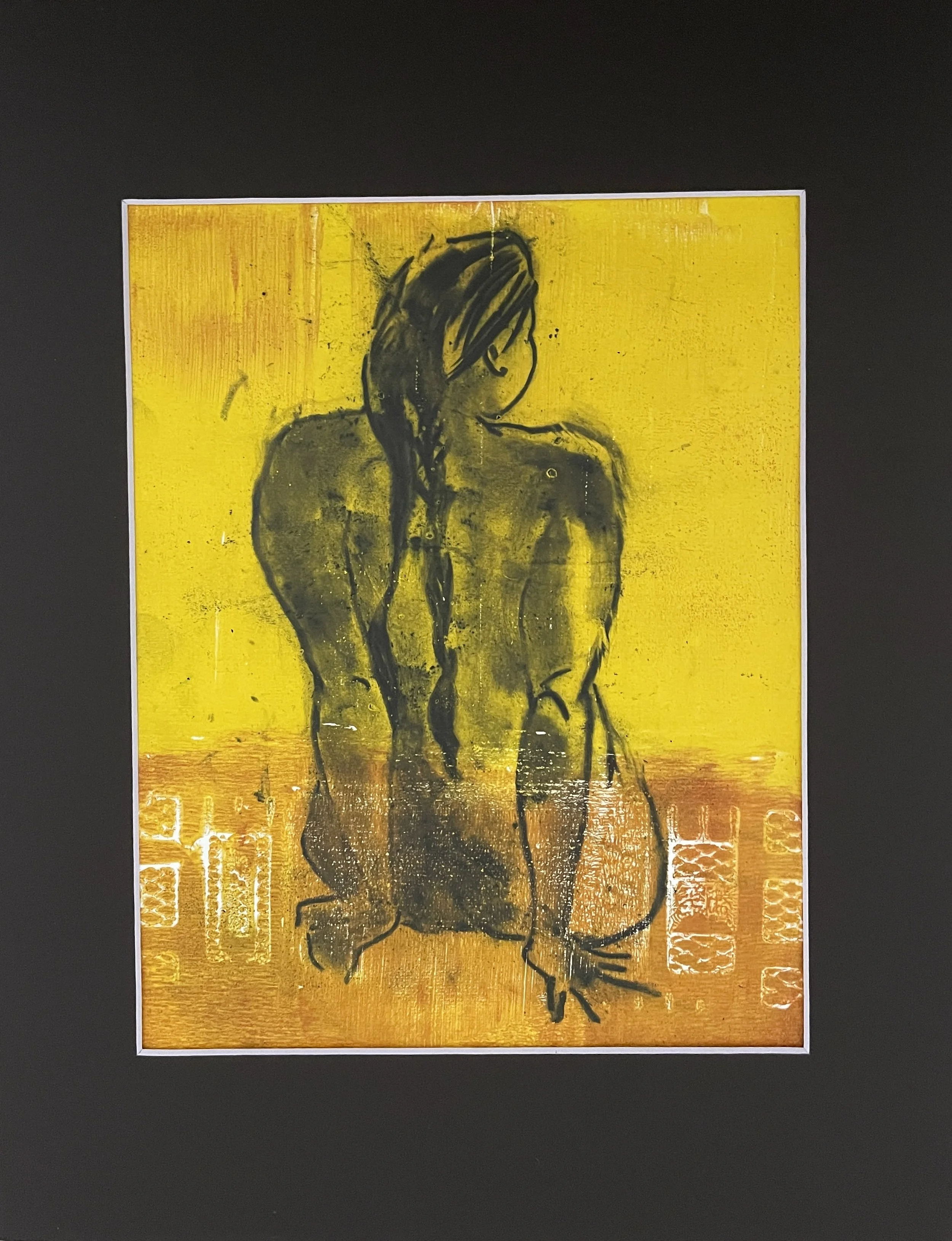 "Female nude", 2025, mixed media on 300 gsm Fabriano paper, image size 10x8", framed in acid free black paper mat 14x11"