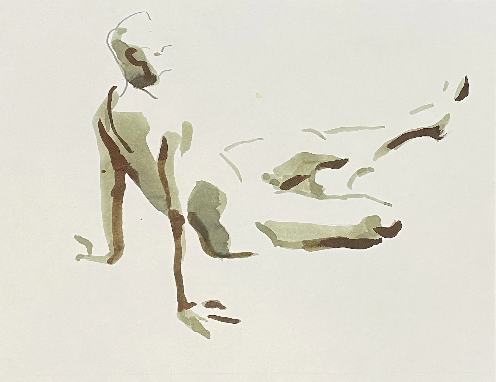 "Male figure", 2025, mixed media on acid free cotton watercolour paper 300 gsm, image size 8x10.5"", framed in acid free black paper mat 11x14"