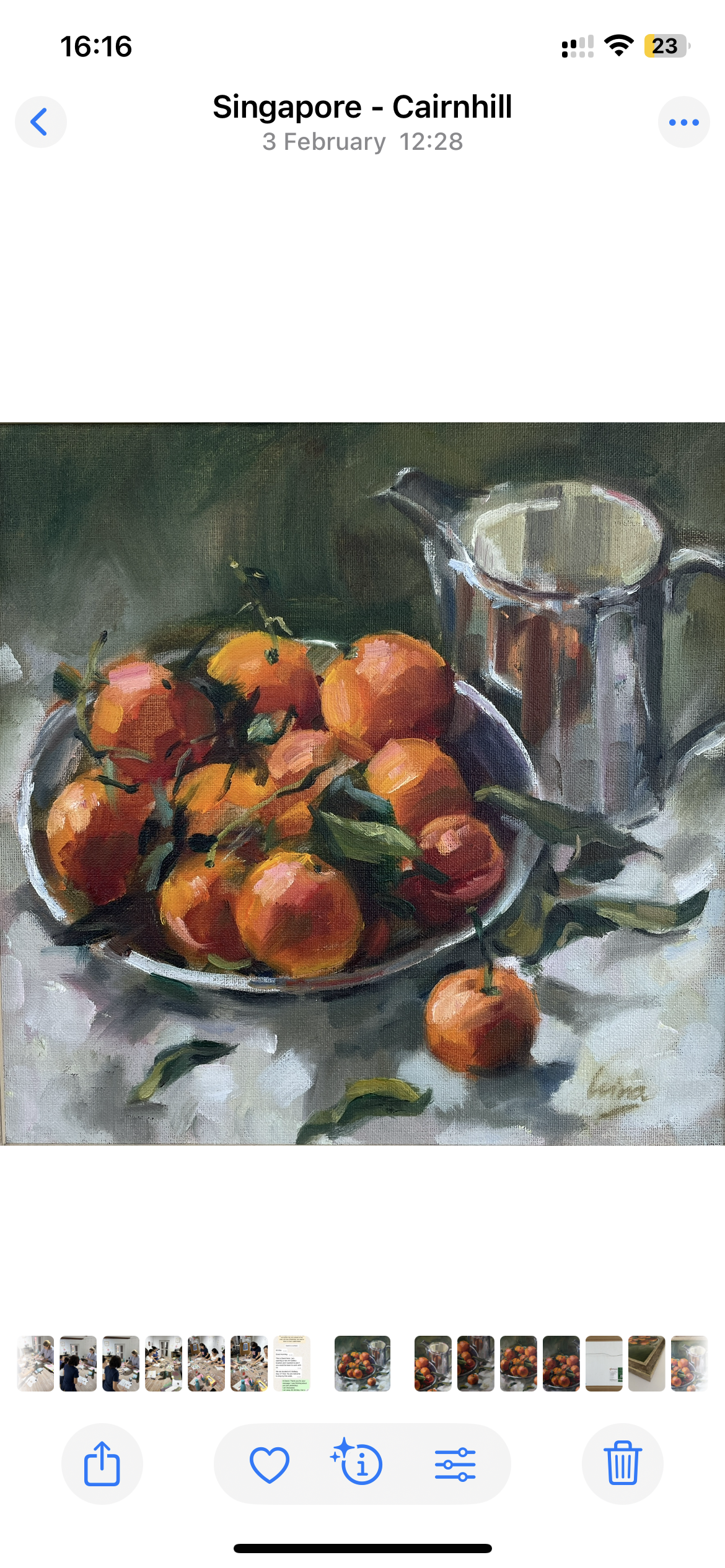 Oranges and a silver jug, 2023, oil on panel, 30x30cm, framed