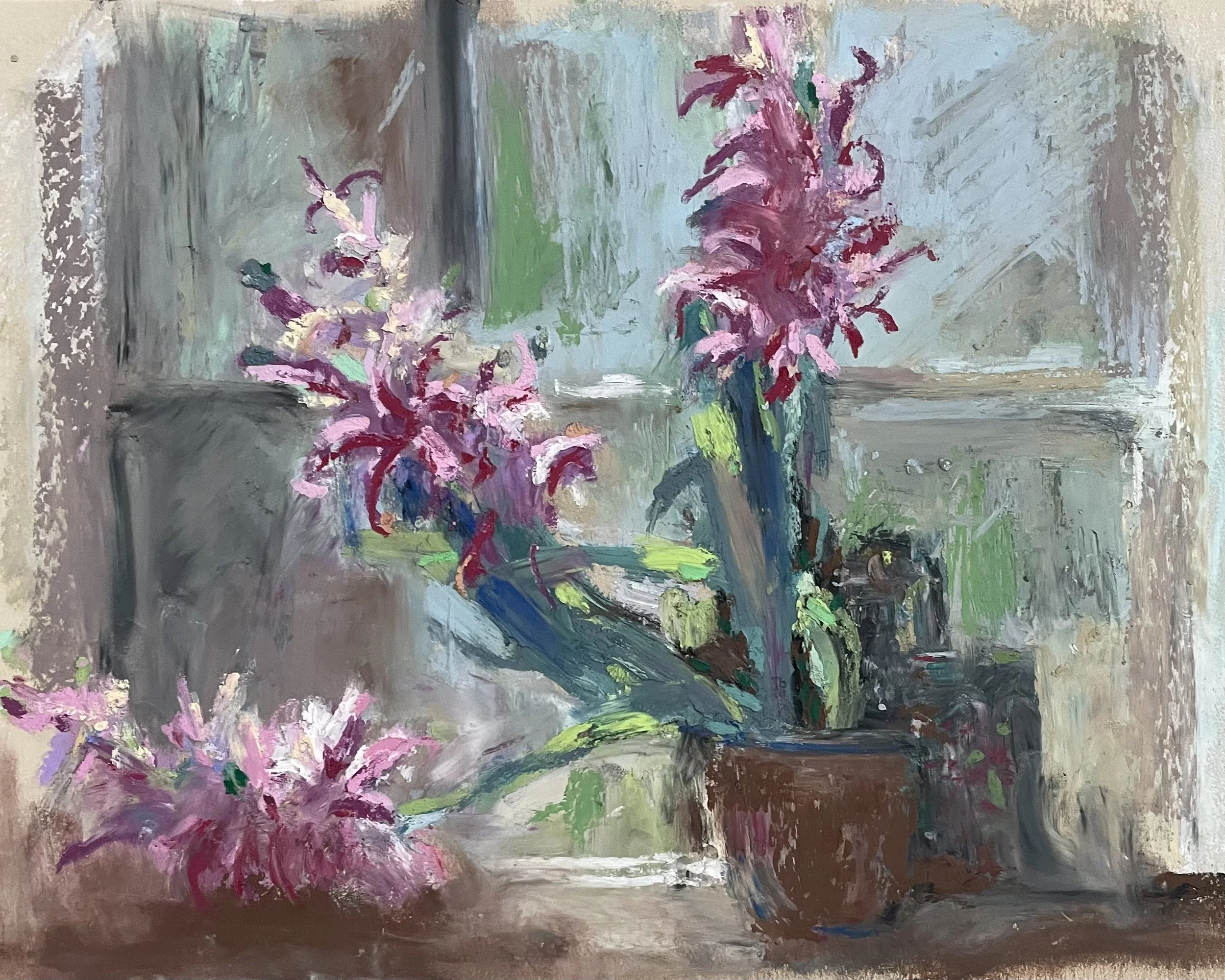 Cyclamens, 2023, oil pastels on craft paper, A4