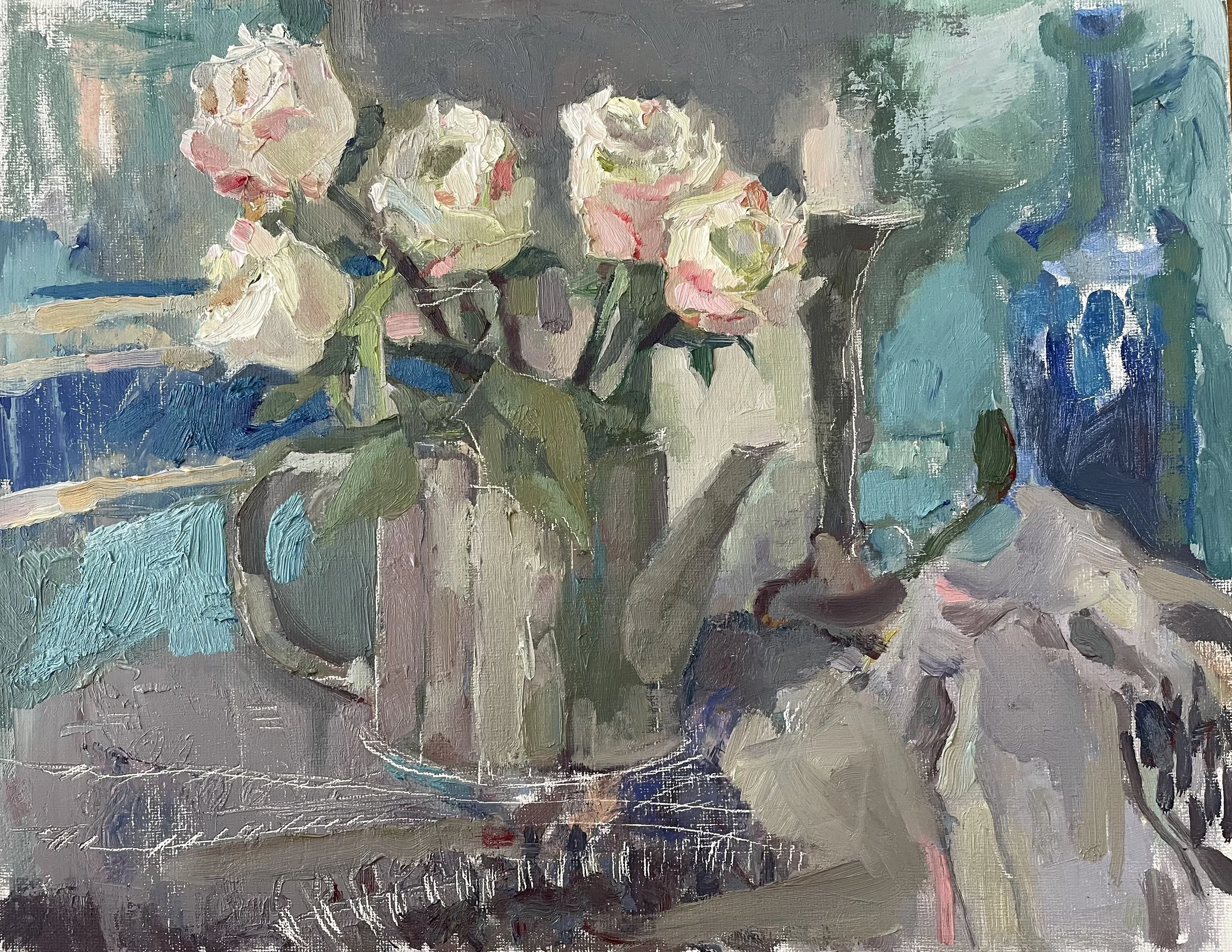 "Roses", 2024, oil on canvas panel, 27.5x35.5 cm, unframed