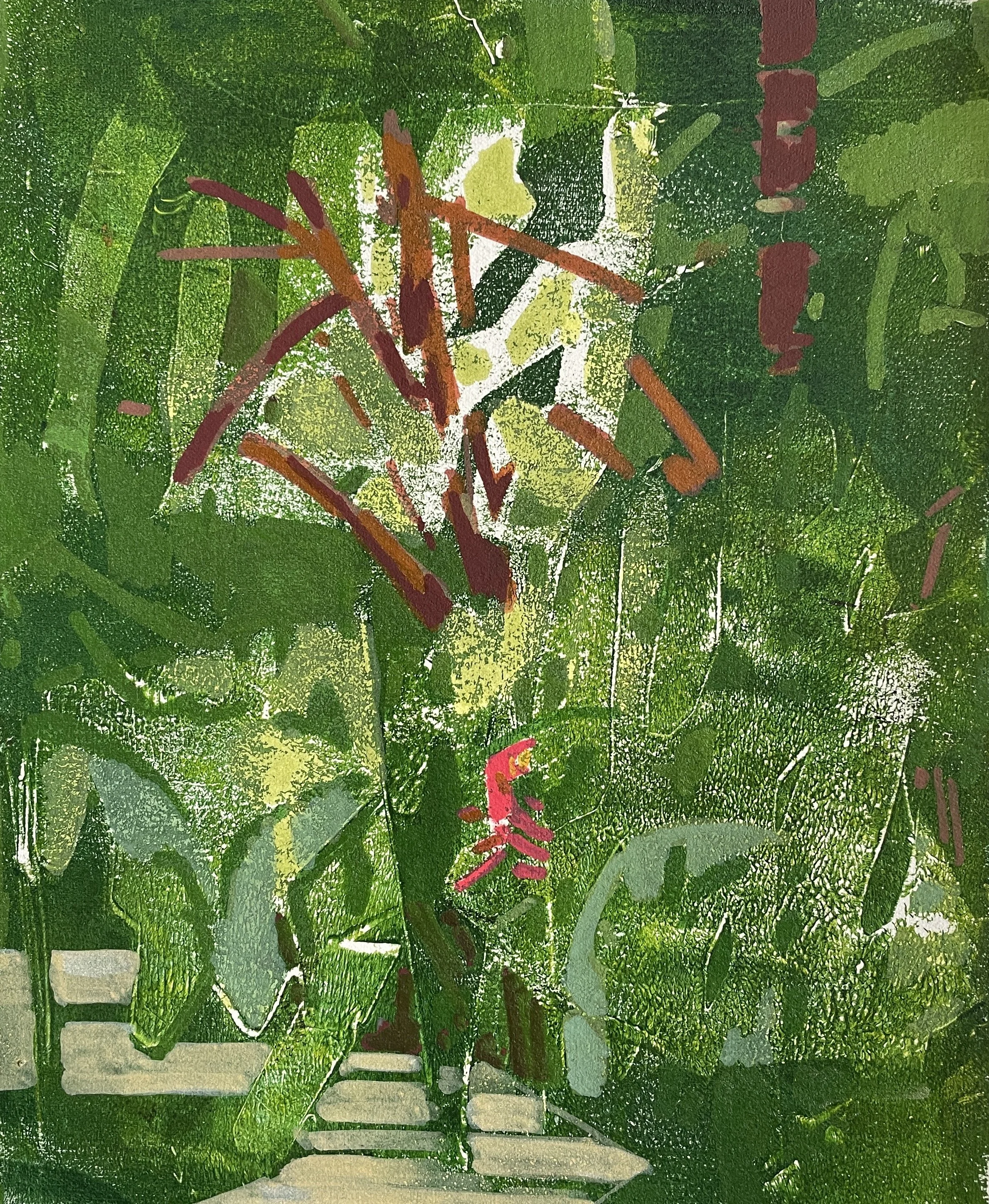 Botanic Gardens, 2025, Monotype and acrylic markers on Fabriano 300 gsm paper, 29.7x21 cm, framed in acid free white paper mat, 14x11"