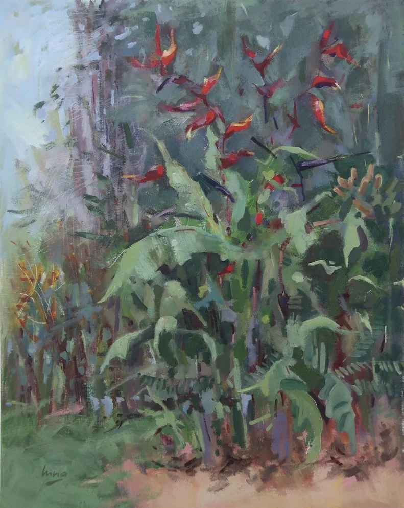 "Hidden corner of the Botanic Gardens" - Oil on canvas, 59x44 cm, framed, 2022
